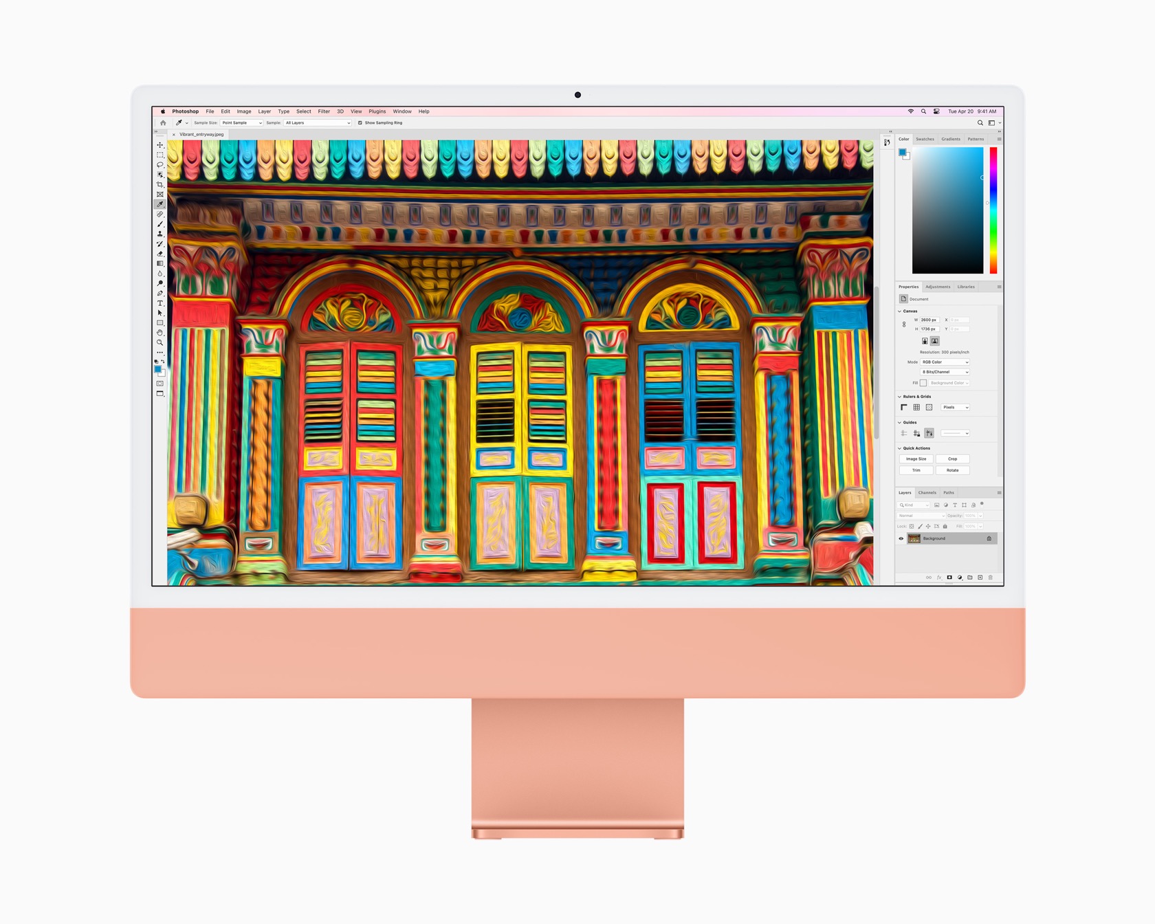Розди­віться най­менші деталі на імер­сив­ному дисплеї Retina 4,5K 24 дюйми. Розши­рена колірна гама Р3 з понад мільярдом кольорів та яскравість дисплея 500 кд/м² забез­пе­чують реа­лі­стичне та насичене зображення. Спеці­альне анти­блі­кове покриття сприяє зручному читанню й створює більший комфорт для очей. А техно­логія True Tone авто­ма­тично регулює колірну тем­пе­ра­туру дисплея відпо­відно до навко­лиш­нього освіт­лення, тому зобра­ження на екрані має природ­ний вигляд. Реда­гуйте фото­графії, працюйте над пре­зен­та­ціями, дивіться улюблені фільми й серіали — на iMac усе ви­да­ється ідеальним.