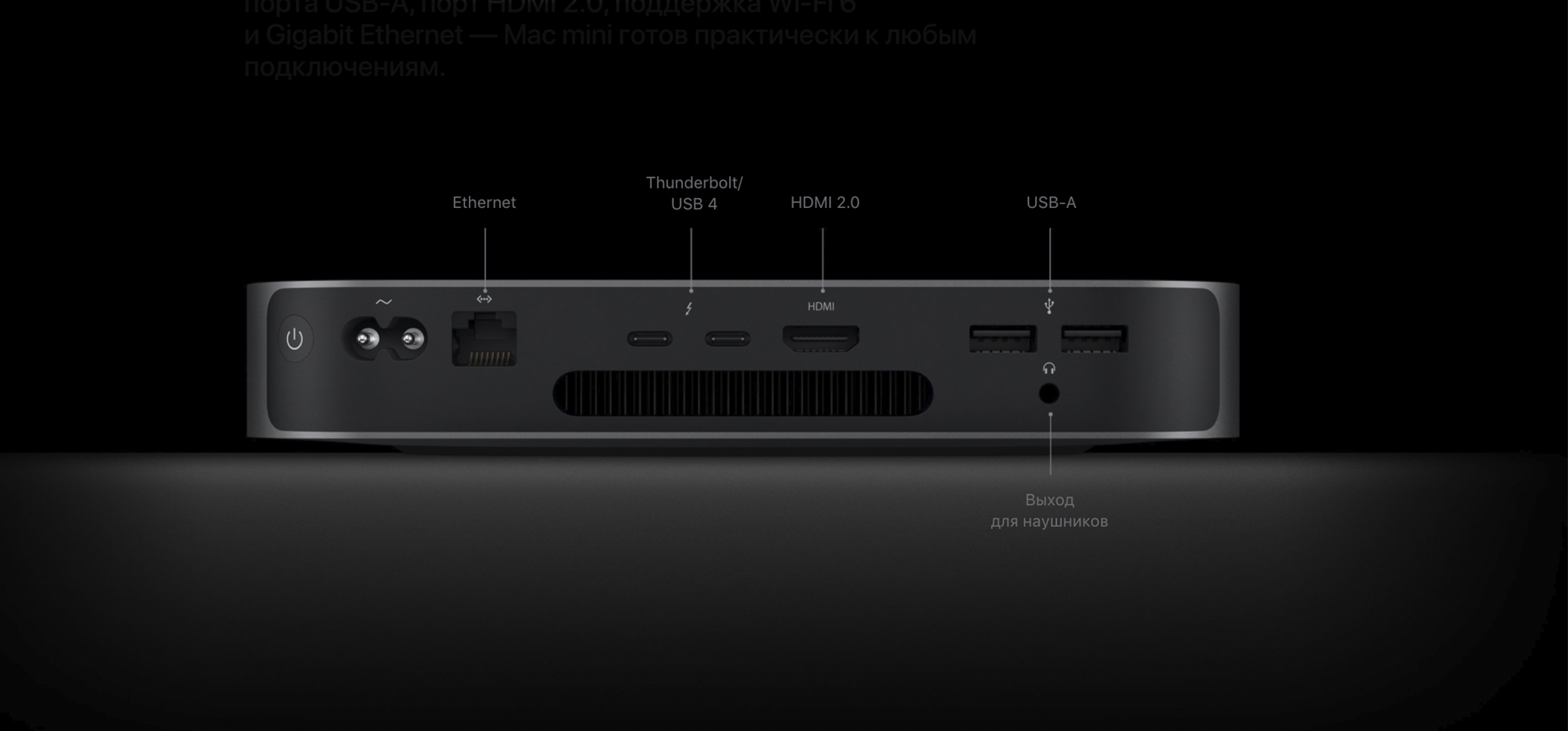 Ещё одна технология, которая впервые стала доступна на Mac mini, — Wi‑Fi 6. Этот стандарт обеспечивает более высокое качество связи с пропускной способностью до 1,2 Гбит/с. Передача файлов и резервное копирование в Time Machine будут выполняться молниеносно.