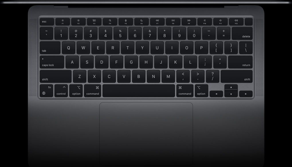 Клавіатуру MacBook Air обладнано удосконаленим механізмом «ножиці» — це найзручніша клавіатура на ноутбуках Mac.