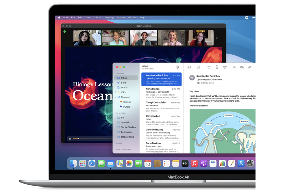 Операційна система macOS Big Sur розроблена з урахуванням величезного потенціалу чипа M1. Потужне оновлення додатків. Стильний новий дизайн. Передові функції безпеки та захисту конфіденційності. Це наше найпотужніше програмне забезпечення, яке створене для найбільш передового обладнання.