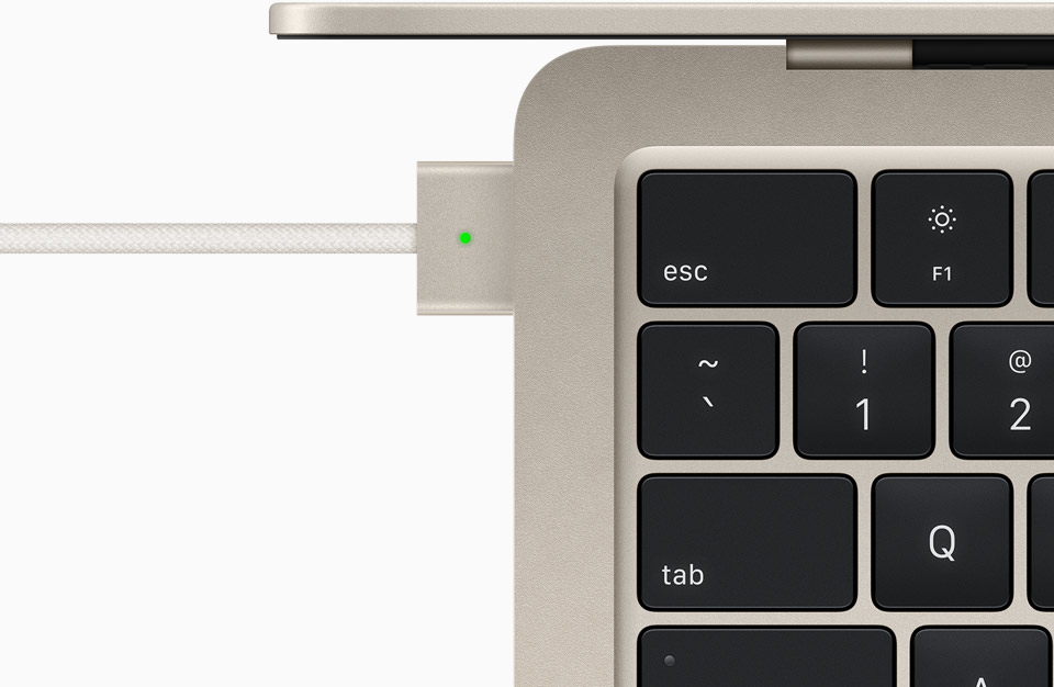 MacBook Air поставляється в чотирьох красивих варіантах обробки на вибір Midnight, Space Gray, Silver, Starlight – з кабелем живлення MagSafe того ж кольору.