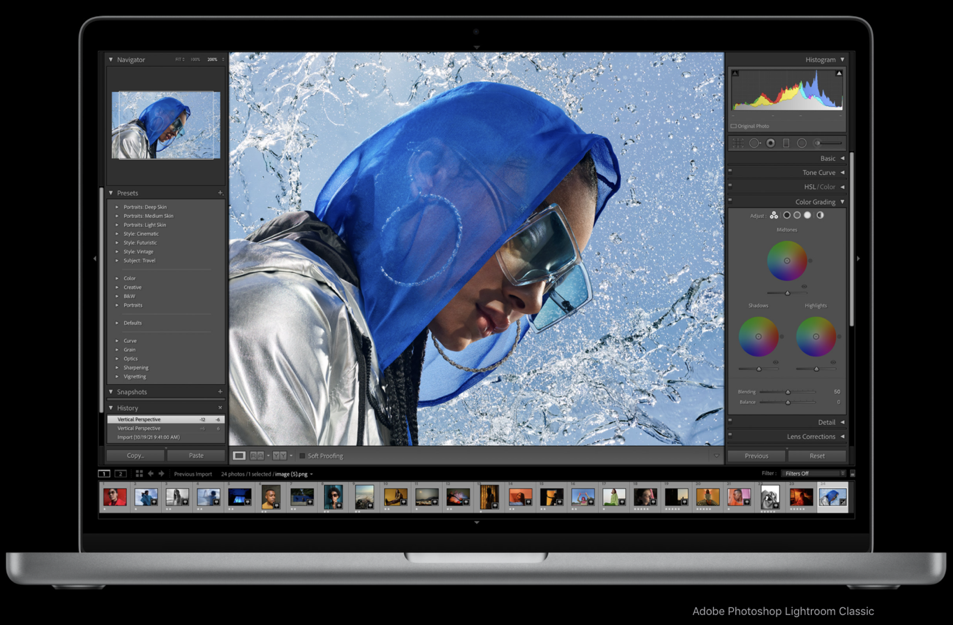 Нестримна міць і неймовірний час роботи від акумулятора - ось вона, справжня магія чипів Apple. З ними ви можете скомпілювати до чотирьох разів більше коду в Xcode і до двох разів довше займатися обробкою зображень в Lightroom Classic, перш ніж акумулятор розрядиться повністю. Причому MacBook Pro зберігає високий рівень продуктивності, навіть якщо вимкнути його з розетки.