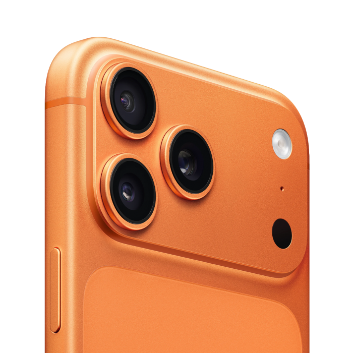 iPhone 17 Pro та iPhone 17 Pro Max оснащені найпотужнішою системою камер Apple. Сенсори високої роздільної здатності, як спереду, так і ззаду, еквівалентні восьми професійним об'єктивам у кишені. Вражаюче наближення