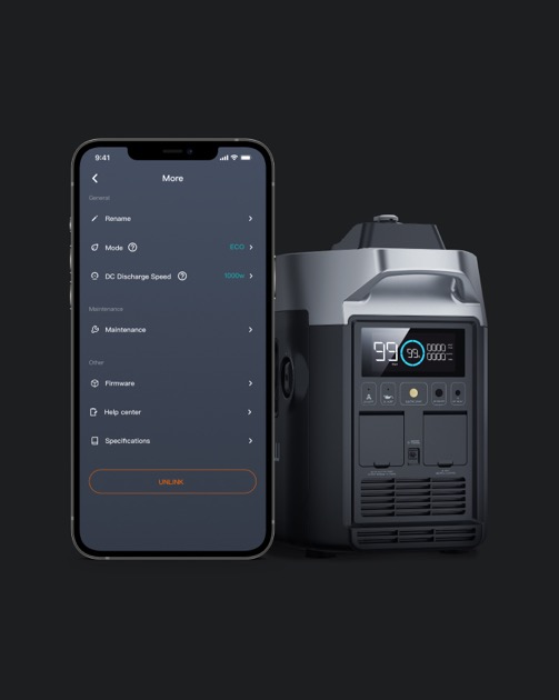 Когда станция DELTA Pro или DELTA Max разряжается до установленных вами показателей % в мобильном приложении, Smart Generator автоматически включается. По достижении установленного максимального заряда двигатель выключается во избежание лишних расходов топлива.