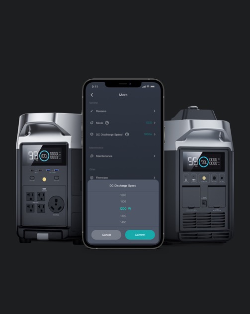 После подключения через Bluetooth или Wi-Fi приложение открывает целый мир возможностей. Установите уровень заряда батареи для автоматического запуска, контролируйте выходной уровень постоянного тока, дистанционно запускайте или останавливайте устройство, а также включите экорежим, получая полный набор мониторинга и уведомлений. Используйте встроенный ЖК-экран для всех важных функций.
