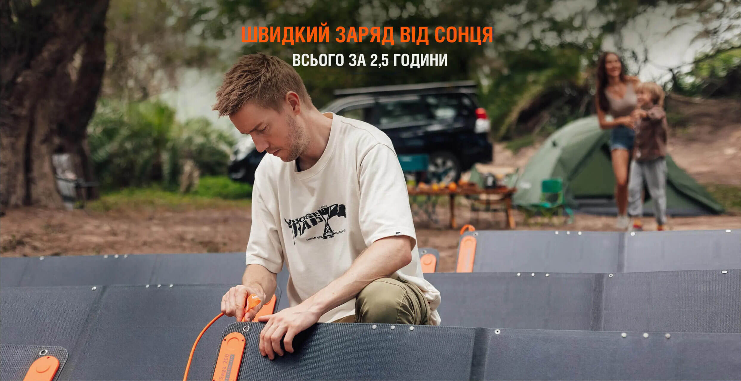 Электростанция может быть полностью заряжена с помощью 6 солнечных панелей SolarSaga 200W всего за 2,5 часа и всего за 2 часа через розетку. Такой мгновенный способ заряда позволит вам быстро зарядиться, находясь вдали от сети.