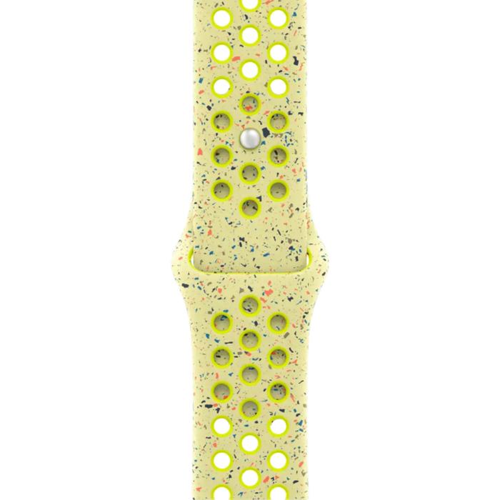 Спортивный ремешок Nike, изготовленный из специального высокоэффективного фтореластомера с формованными под давлением перфорациями для воздухопроницаемости, прочный, но при этом удивительно мягкий. Гладкий плотный материал элегантно ложится на запястье и обеспечивает комфорт на коже. Инновационная застежка обеспечивает идеальную посадку.