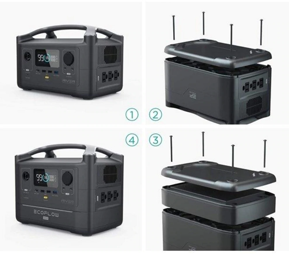 Після інтеграції додаткової батареї в RIVER ви отримаєте пакет RIVER, який контролюється і управляється BMS основної моделі. Це економічне рішення для модернізації RIVER з точки зору зберігання. Комплект RIVER Bundle потужністю 576 Втч забезпечує достатню кількість енергії для роботи основних пристроїв протягом кількох годин залежно від фактичної потужності.