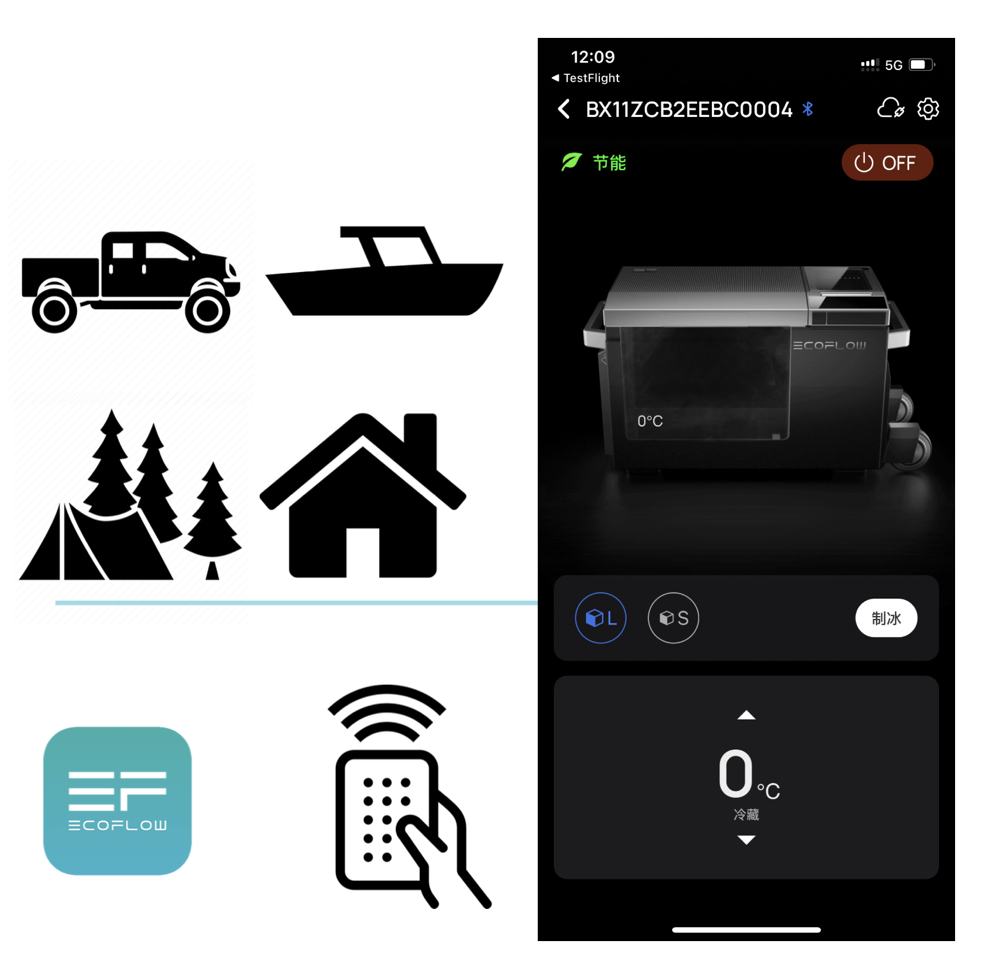 Перший у світі портативний холодильник-морозильник з інтегрованим акумулятором та льодогенератором. Новий холодильник EcoFlow Glacier розроблений для повної портативності, Glacier живиться від акумулятора і не потребує додаткових кабелів, що дозволяє використовувати його в автомобілі, вантажівці, автофургоні, човні, в поході або на рибалці. Потужний 120 Вт компресор працює настільки швидко, що на виготовлення кубиків льоду потрібно всього 12 хвилин.