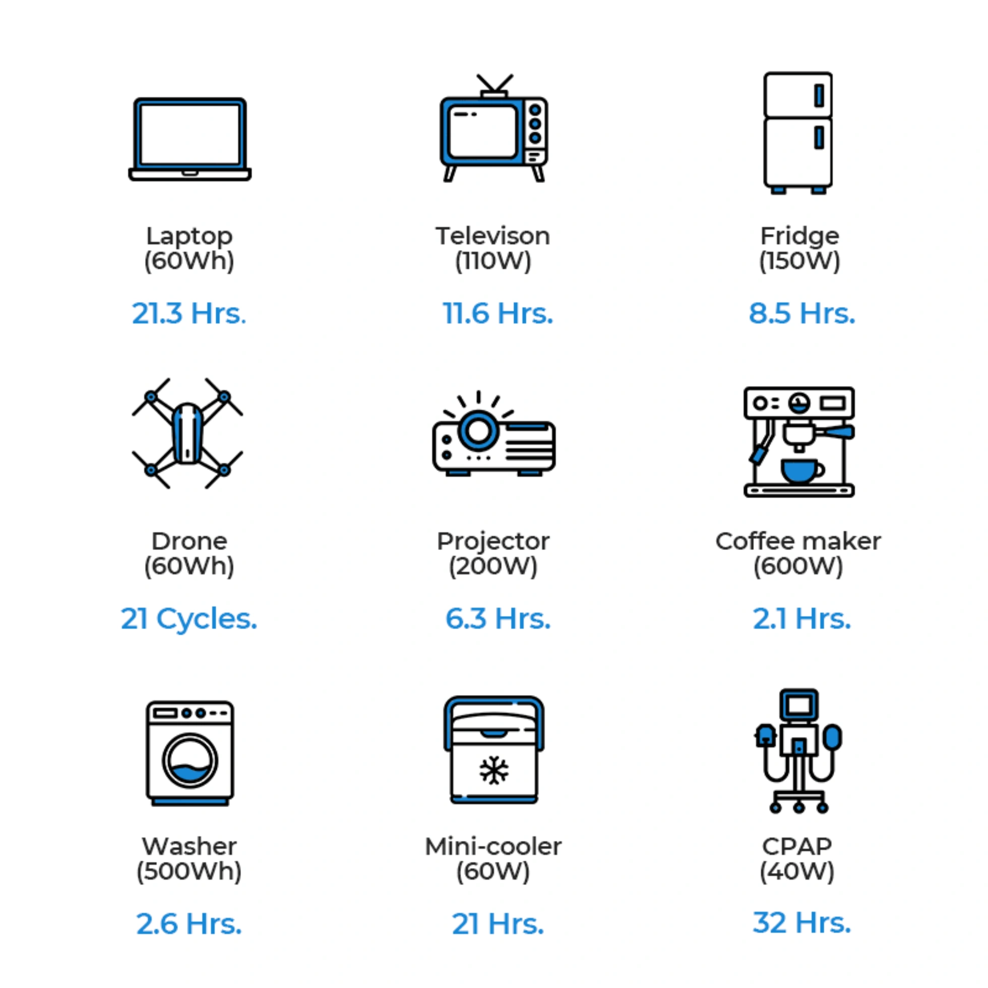 BLUETTI EB150 ідеально підходить для дому або в кемпінгу. EB150 може живити ваш GPS, електронний барометр, телевізор, ігровий ПК, осушувач, снігоочисник, міні-холодильник, портативну плиту, медичне обладнання. для надзвичайних ситуацій. панеллю це чудовий спосіб підтримати вас у надзвичайних ситуаціях або під час тривалих вимкнень електроенергії.