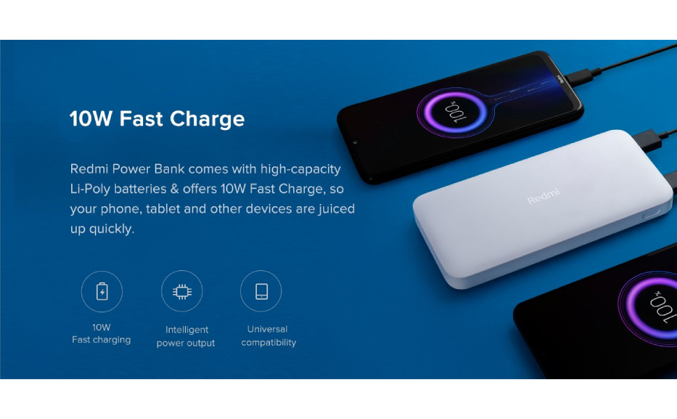 Портативний акумулятор Redmi PB100LZM на 10 000 мАг має дуже гарний дизайн. Він обладнаний двома виходами USB-A і двома портами для зарядки: Micro-USB і USB Type-C. Виготовлений девайс з якісного та зносостійкого ABS-пластика.