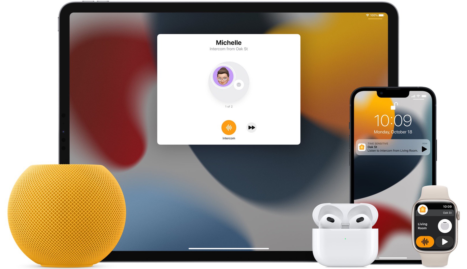 Нова функція «Інтерком» дозволяє всім членам сім'ї легко і швидко спілкуватися один з одним, коли вони вдома. Людина може передати повідомлення по Інтерком в іншу кімнату або зону або відразу в кілька кімнат - і його голос буде автоматично відтворений на відповідній колонці HomePod. Інтерком підтримується на iPhone, iPad, Apple Watch, AirPods і CarPlay, тому отримувати повідомлення зможуть всі, хто знаходиться в будинку, а відправляти їх можна, навіть коли ви гуляєте у дворі або перебуваєте далеко від будинку.