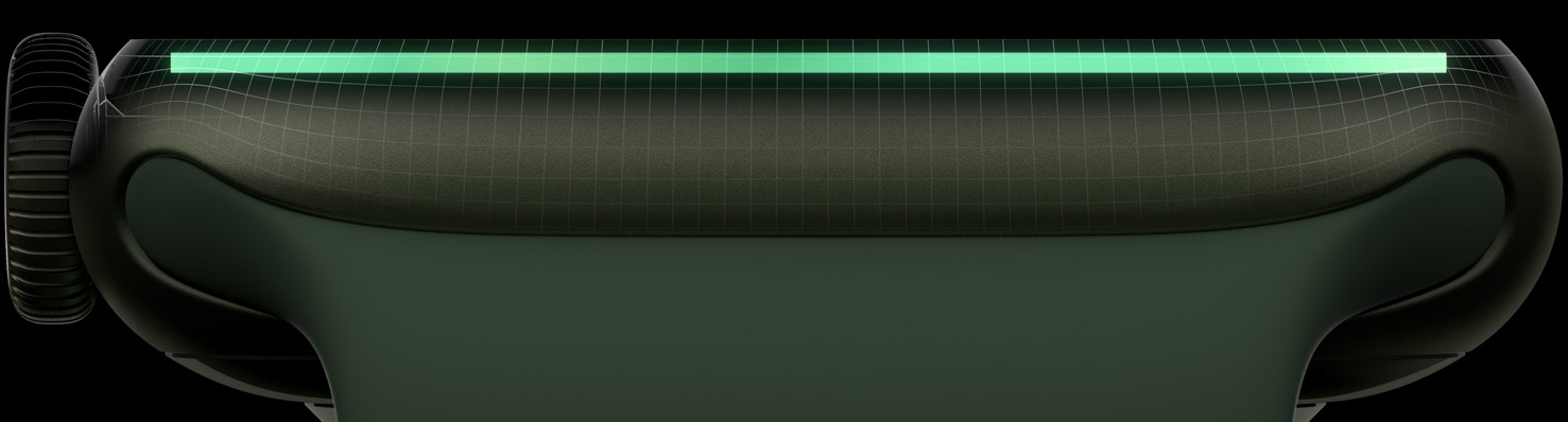 • Фронтальне скло товще на 50%.  Це скло збільшеної товщини. Особливо в центрі дисплея. У цій області воно в 2 рази товще, ніж у Apple Watch Series 6, що робить його більш міцним.