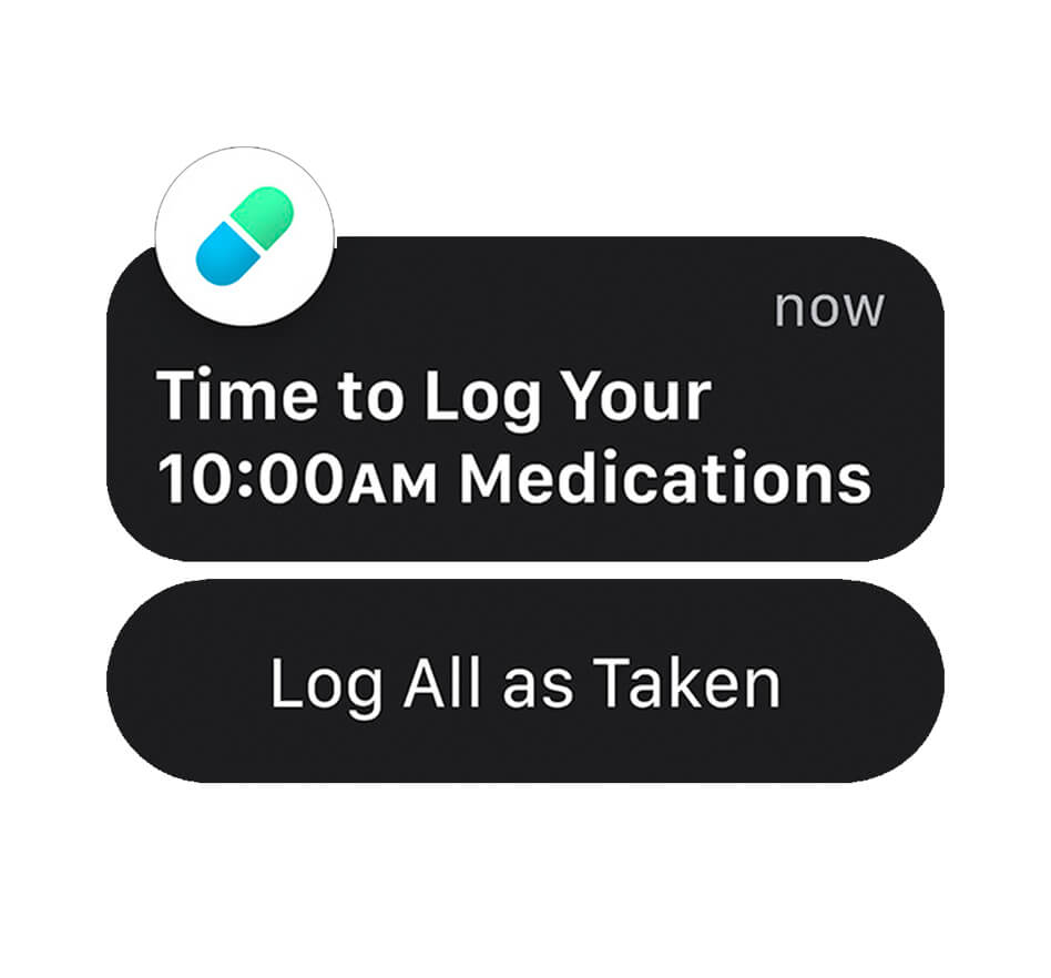 Додаток для прийому ліків допомагає вам непомітно та практично фіксувати споживання ліків, вітамінів і дієтичних добавок і легко реєструвати їх через Apple Watch.