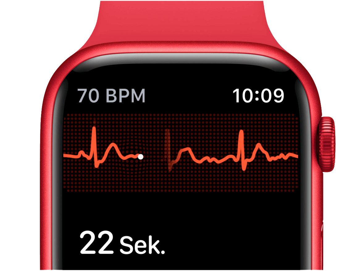 Завдяки додатку ECG Apple Watch Series 8 здатні генерувати ЕКГ, подібну до електрокардіограми в одному відведенні.