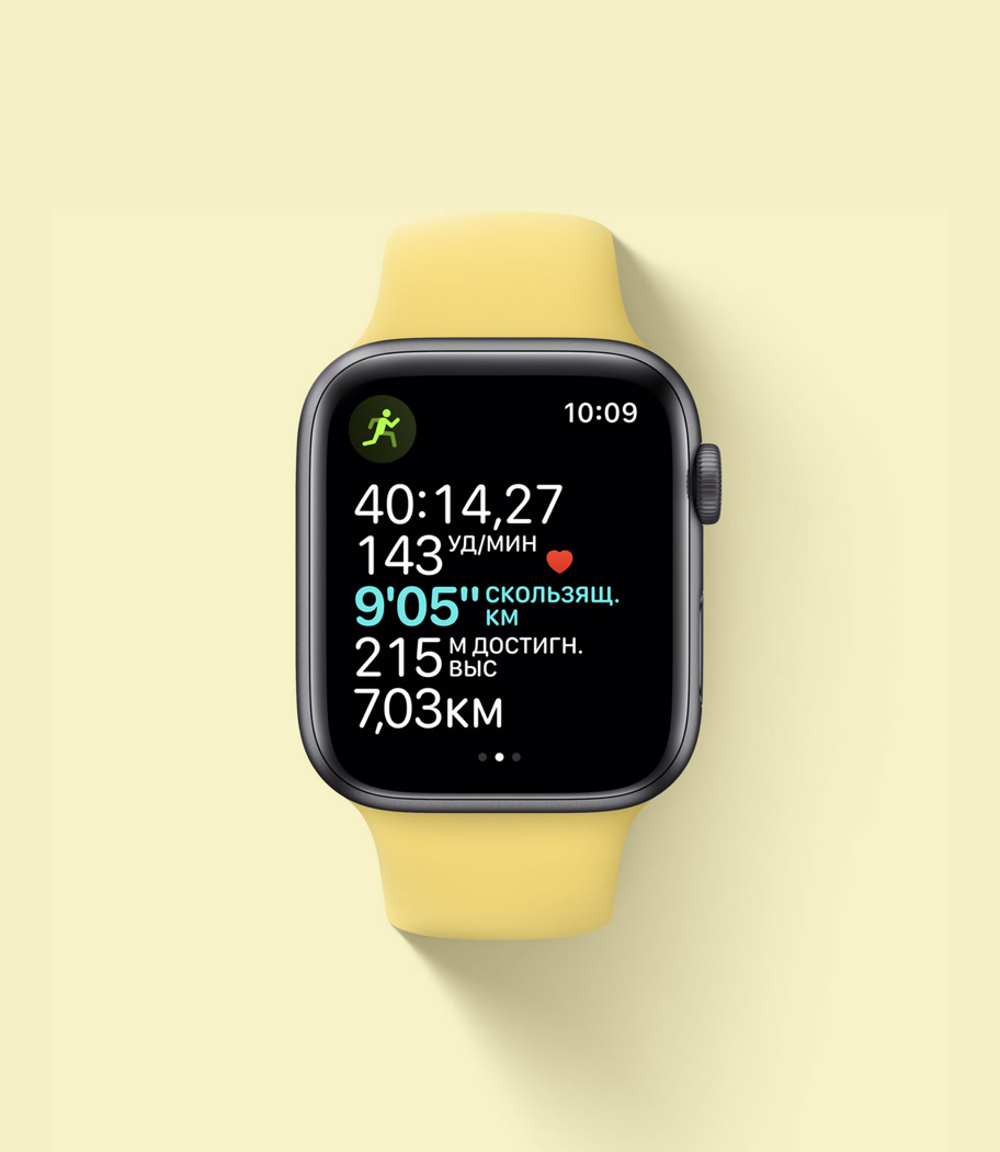 Apple Watch SE заохочує до здорового способу життя. Він має великий дисплей Retina, датчики для занять фітнесом, потужні функції для підтримання здоров’я та безпеки, а також стежить за частотою серцебиття. Якщо щось піде не так, Apple Watch повідомить про це, щоб ви могли вчасно звернутися до лікаря. Він навіть може викликати допомогу в екстреному випадку.