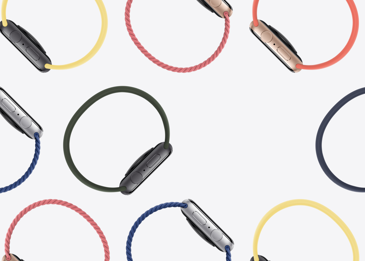Монобраслети — новий спосіб носити Apple Watch. Легкі, неймовірно зручні, з м’якого силікону або плетені із синтетичних ниток. Без пряжок і застібок: просто просуньте руку в браслет. Монобраслети випускаються в дев’яти розмірах, щоб кожен міг вибрати свій.