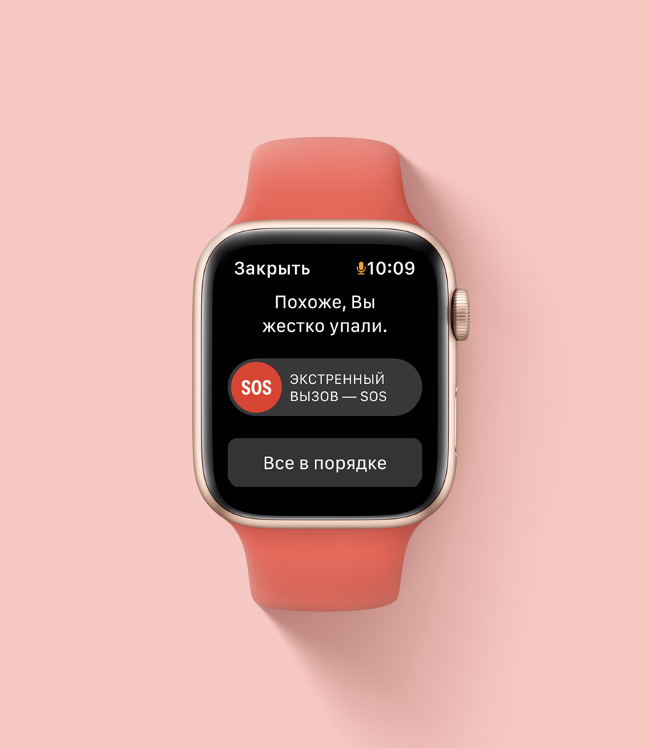 Завдяки інтегрованому акселератору й гіроскопу Apple Watch SE здатен розпізнати, що ви різко впали. І якщо ви не рухаєтеся, він миттєво зв’яжеться зі службами порятунку. Ви також можете отримати екстрену допомогу, навіть якщо подорожуєте за кордон: просто натисніть і утримуйте бічну кнопку.