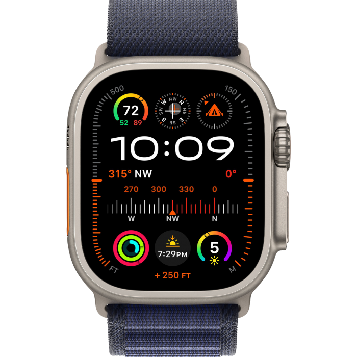 Apple Watch Ultra 2 2024 GPS + Cellular 49mm Natural Titanium Case with Navy Alpine Loop - Small (MYT33+MXMX3)